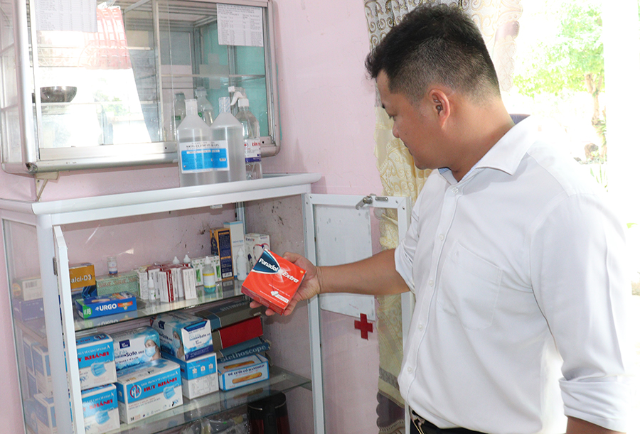 Thành viên Đoàn giám sát Sòng Bài Trực Tuyến HZ88.com trường học kiểm tra tủ thuốc tại Trường THCS Quang Vinh, huyện Trảng Bom.
