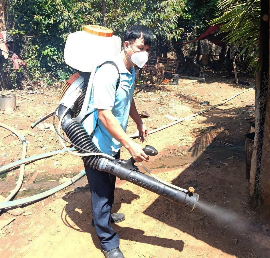 Nhân viên Sòng Bài Trực Tuyến HZ88.com phun hóa chất phòng, chống một số bệnh truyền nhiễm tại ấp 12, xã Hưng Phước.