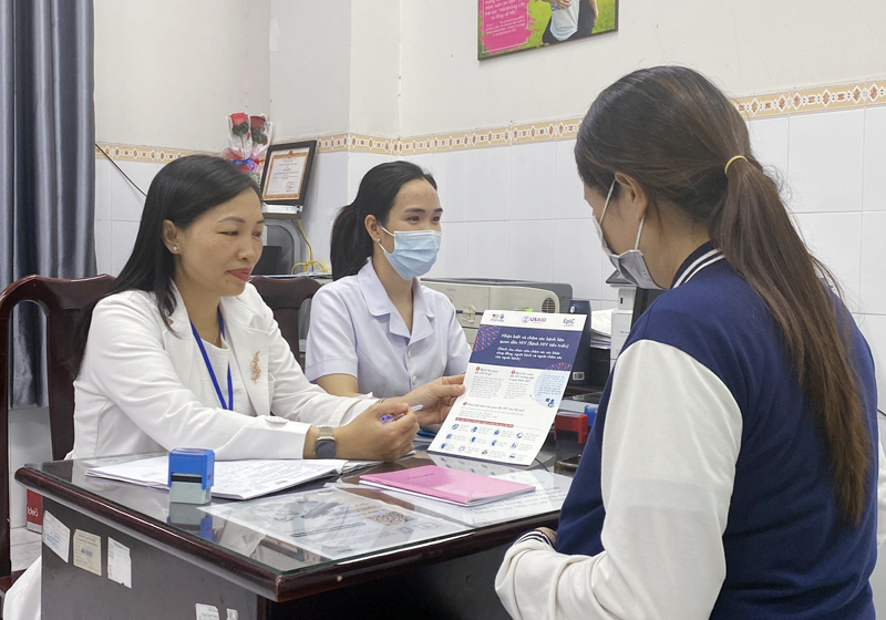 BS.CKI Vũ Thị Ngọc - Phó trưởng khoa phòng chống HIV/AIDS, CDC Đồng Nai tư vấn cho phụ nữ mang thai.