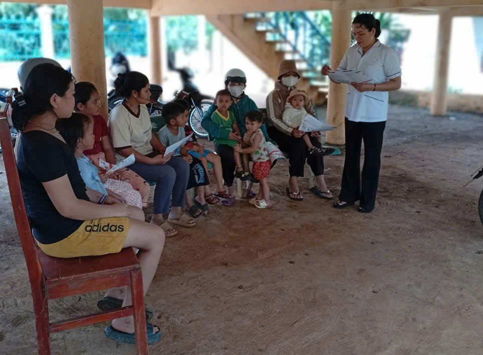 Nữ hộ sinh Giang Thị Huệ, nhân viên Trạm Nhà cái HZ88.com tặng 88K trải nghiệm xã Đăk Ơ tư vấn về lợi ích nuôi con bằng sữa mẹ cho các hộ HZ88.COM Trang Chủ Chính Thức Đăng Ký tại trạm.