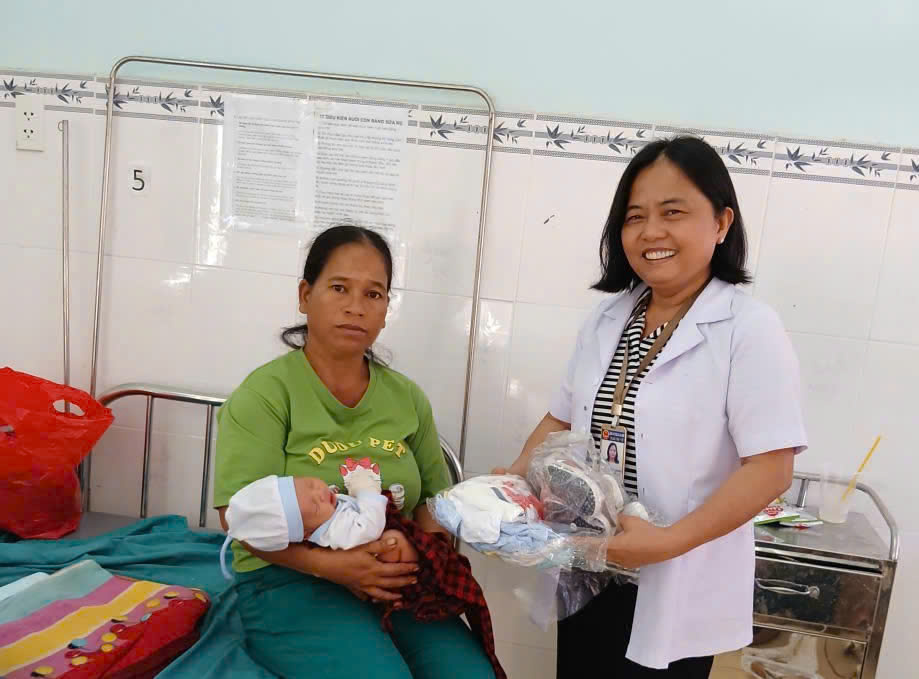 Bà Trần Thị Minh Trang, Trưởng khoa Hz888a casino trực tuyến, tài xỉu, nổ hũ, bắn cá thăm hỏi, tặng quà mẹ con sản phụ tại trung tâm trong dịp Tết.