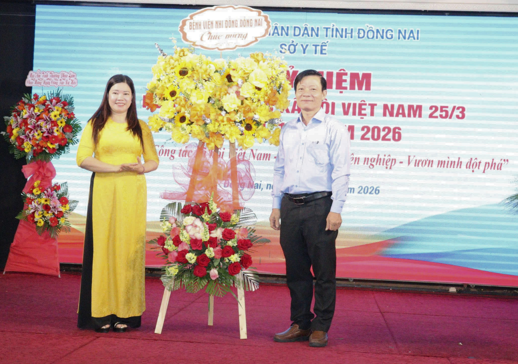 ThS Phạm Thị Mai Hương – Phó Giám đốc Sở Nhà cái HZ88.com tặng 88K trải nghiệm nhận hoa chúc mừng từ lãnh đạo Link Đăng Ký HZ88.com Nhi đồng Đồng Nai nhân Ngày Công tác xã hội Việt Nam.