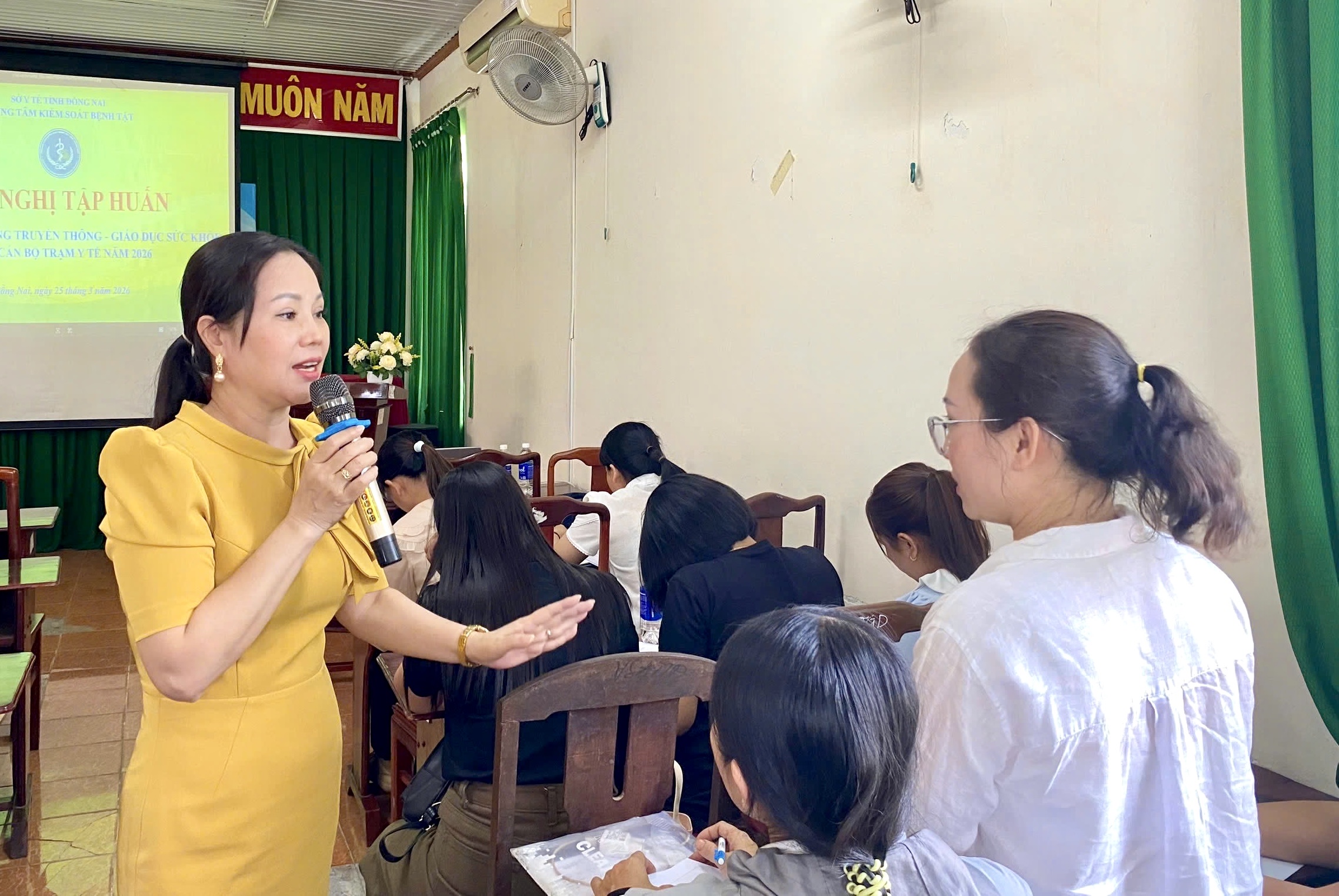 ThS.BS Hồ Thị Hồng, Khoa Truyền thông – GDSK CDC Đồng Nai chia sẻ kiến thức chuyên môn tại lớp tập huấn