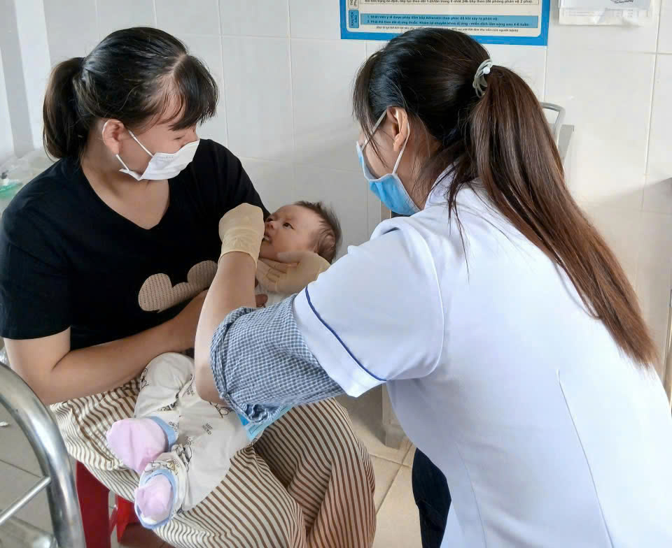 Cho trẻ uống vắc xin Rota tại điểm trạm Sòng Bài Trực Tuyến HZ88.com Trà Cổ - Trạm Sòng Bài Trực Tuyến HZ88.com xã Tân Phú.
